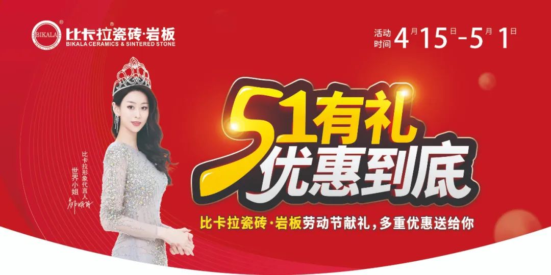 比卡拉瓷磚·巖板在五一期間隆重推出“51有禮,優惠到底”全國促銷活動!