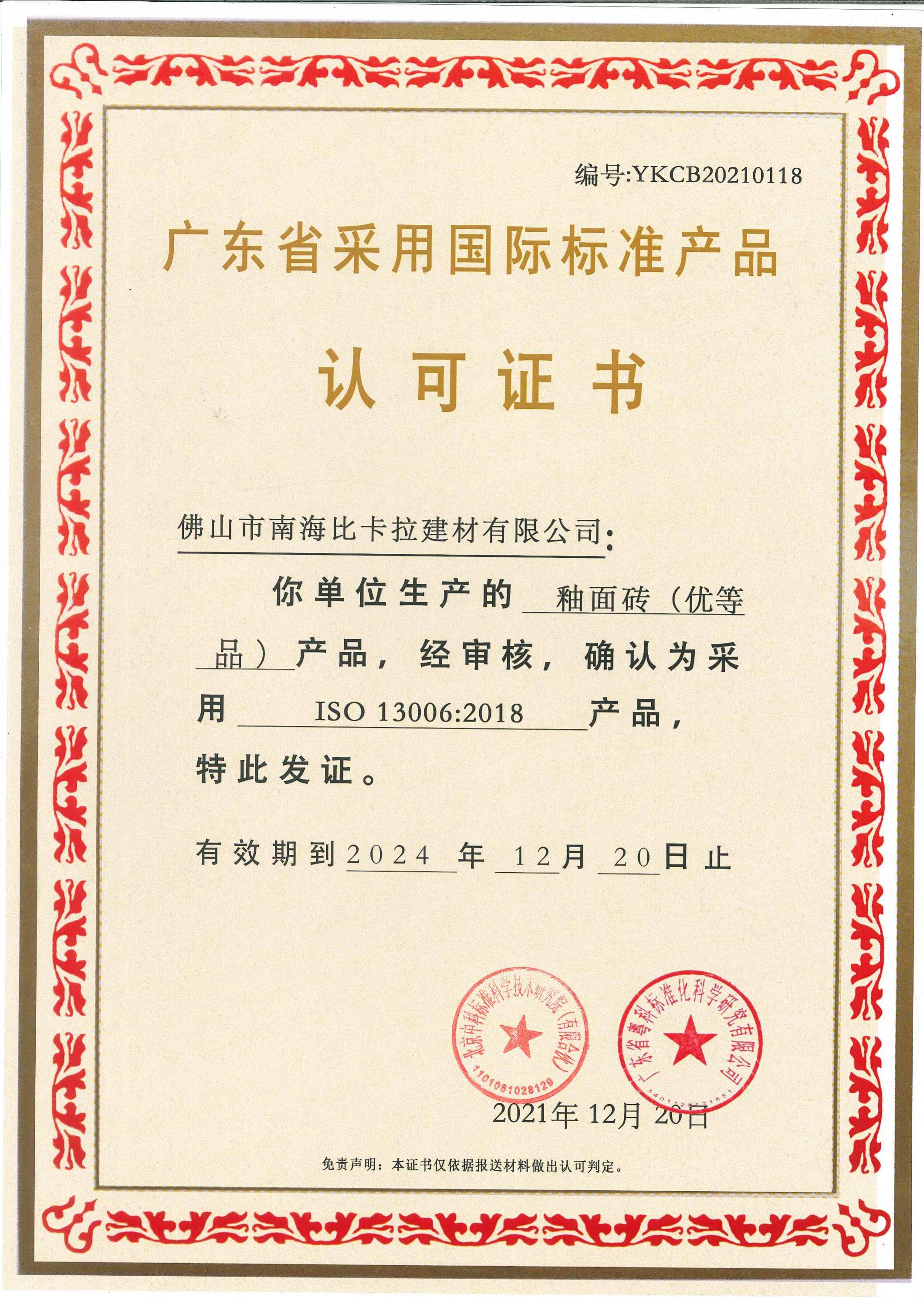 采用國(guó)際標(biāo)準(zhǔn)產(chǎn)品認(rèn)可證書(shū)2
