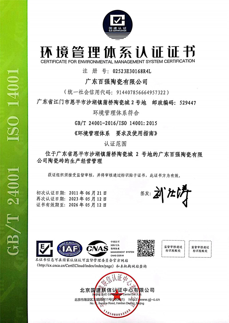 環(huán)境管理體系認(rèn)證證書(shū)